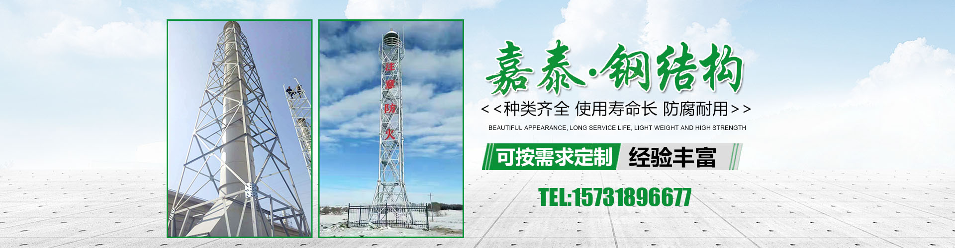 衡水嘉泰鋼結構有限公司位于鐵塔制造之鄉(xiāng)-衡水市景縣廣川經(jīng)濟開發(fā)區(qū),石德、京九鐵路交匯處,距北京、天津、石家莊、濟南均在2小 時交通圈內(nèi),交通便利。公司主要產(chǎn)品有:避雷塔、監(jiān)控塔、瞭望塔、消防訓練塔、電力架構、樓頂工藝塔、廣播電視塔、煙囪塔、測風塔 、電力塔、單管塔、雷達塔、仿生樹塔、氣象觀測塔、路燈桿,一體化基站、ETC龍門架等,是一家集設計,生產(chǎn),運輸,安裝,維護為一體的廠家。主要服務于鐵塔公司、通信三大運營商、國防通訊,鐵路及森 ......